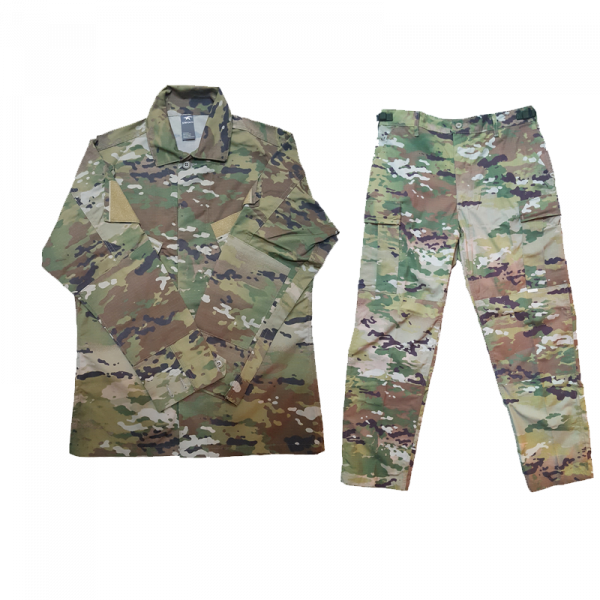 Blusa: De corte semi entallado cuello tipo camisero, manga larga, bolsillos de parche en delanteros y mangas, refuerzo de codos y chicotes de ajuste en bocamanga, con parche institucional en bolsillo superior izquierdo.